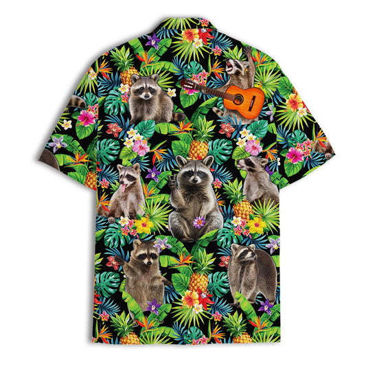 Funny Raccoon Hawaiian Shirt – Tropical Pineapple & Flower Print Aloha Shirt