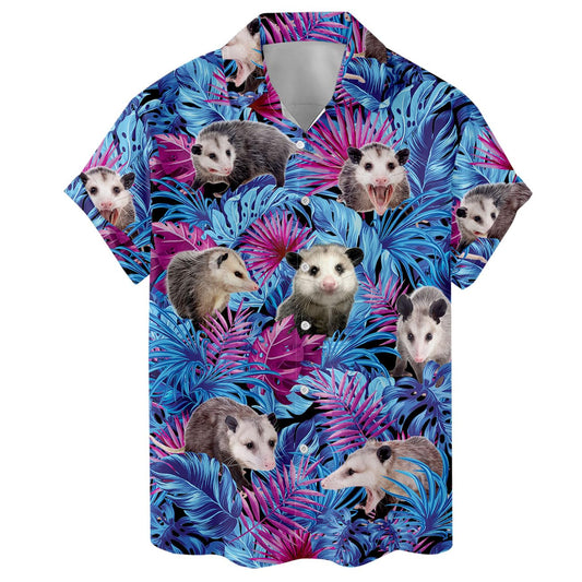 Funny Possum Hawaiian Shirt – Retro Opossum Print Aloha Party Top