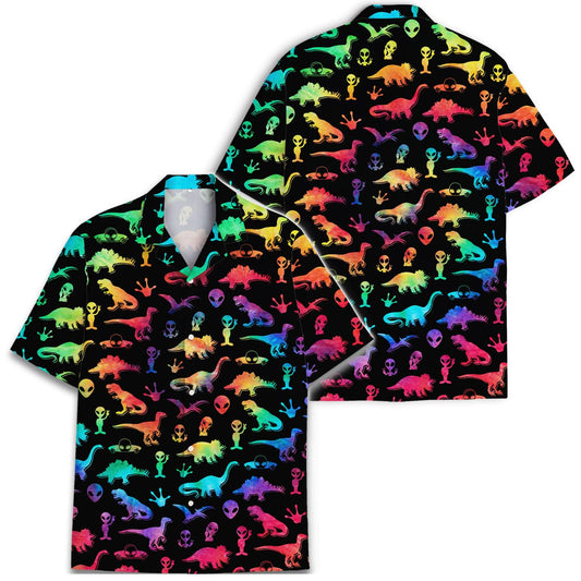 Rainbow Dinosaur Alien Hawaiian Shirt - Neon Galaxy Party Vibes