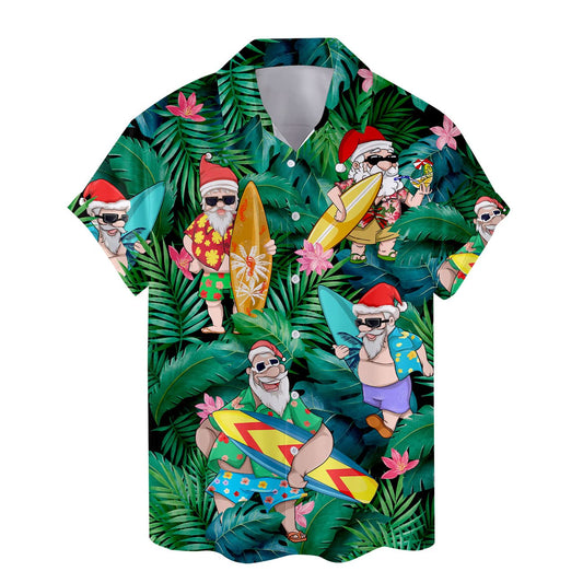 Surfing Santa Hawaiian Shirt – Tropical Christmas Shirt for Men