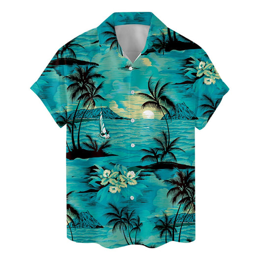 Tropical Ocean Sunset Hawaiian Shirt - Blue Island Beach Vibes