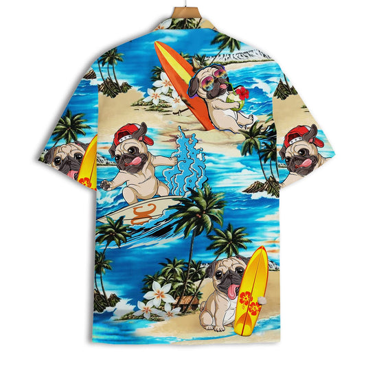 Surfing Pug Hawaiian Shirt – Funny Dog Beach Aloha Shirt for Dog Lovers