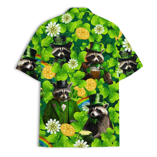 St. Patrick’s Day Raccoon Hawaiian Shirt – Lucky Leprechaun Clover Print