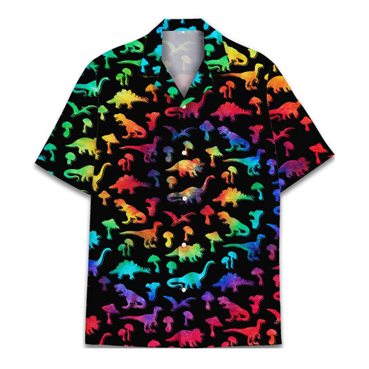 Rainbow Dinosaur Mushroom Hawaiian Shirt – Trippy Dino Aloha Shirt for Summer Fun