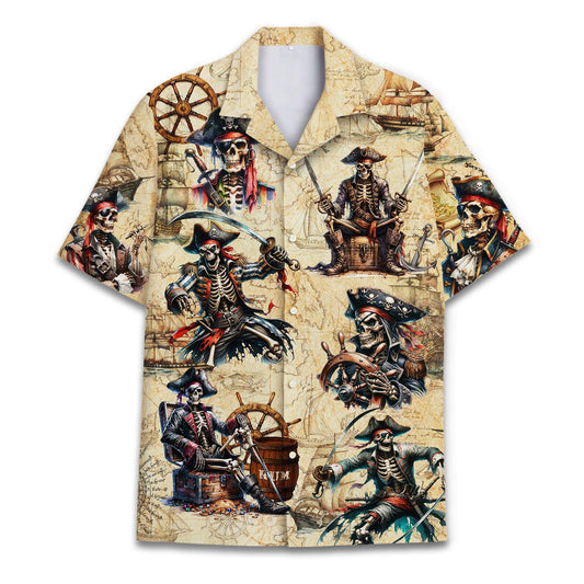 Skeleton Pirate Hawaiian Shirt – Halloween Pirate Aloha Shirt for Men