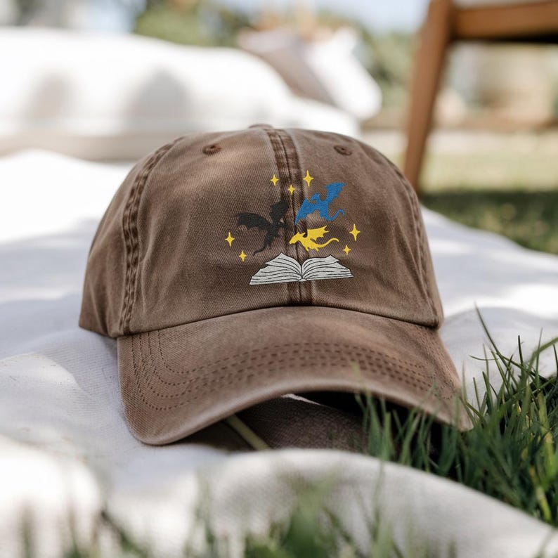 Unleash your inner reader and dragon lover with this Fantasy Dragon Embroidered Washed Hat. 🐉📚