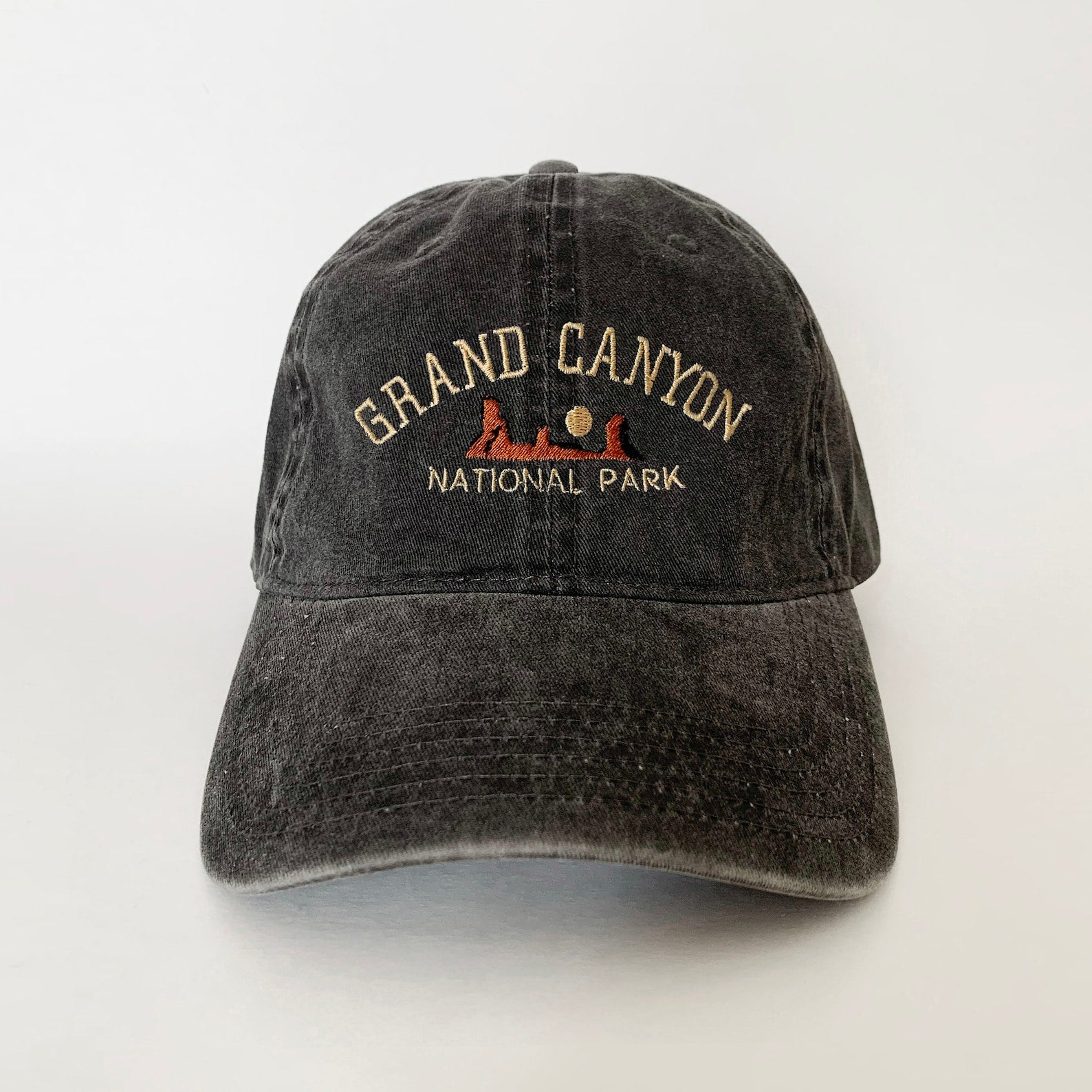 Celebrate one of America's most iconic natural wonders with this Grand Canyon National Park embroidered hat. Featuring desert rock formations and a rising sun stitched in earthy tones, this washed blue dad cap captures the spirit of open skies, canyon trails, and rugged adventure.
