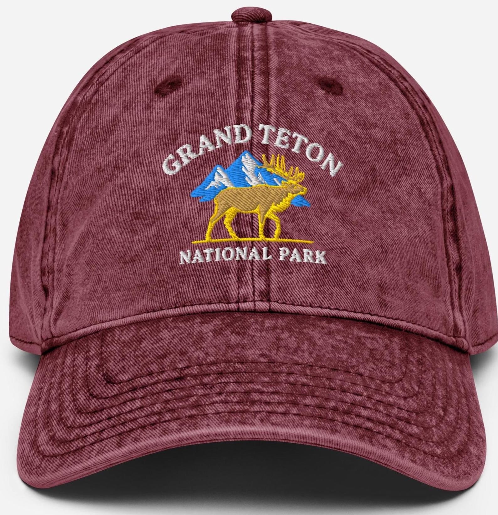 Grand Teton National Park Hat – Embroidered Elk & Mountain Dad Cap