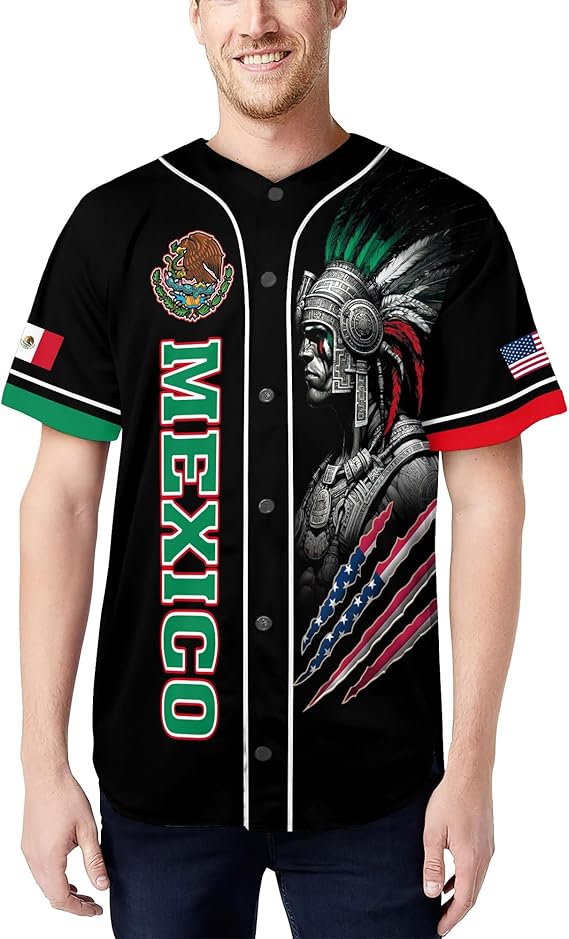 Mexico USA Baseball Jersey – Aztec Warrior & Flag Heritage Shirt
