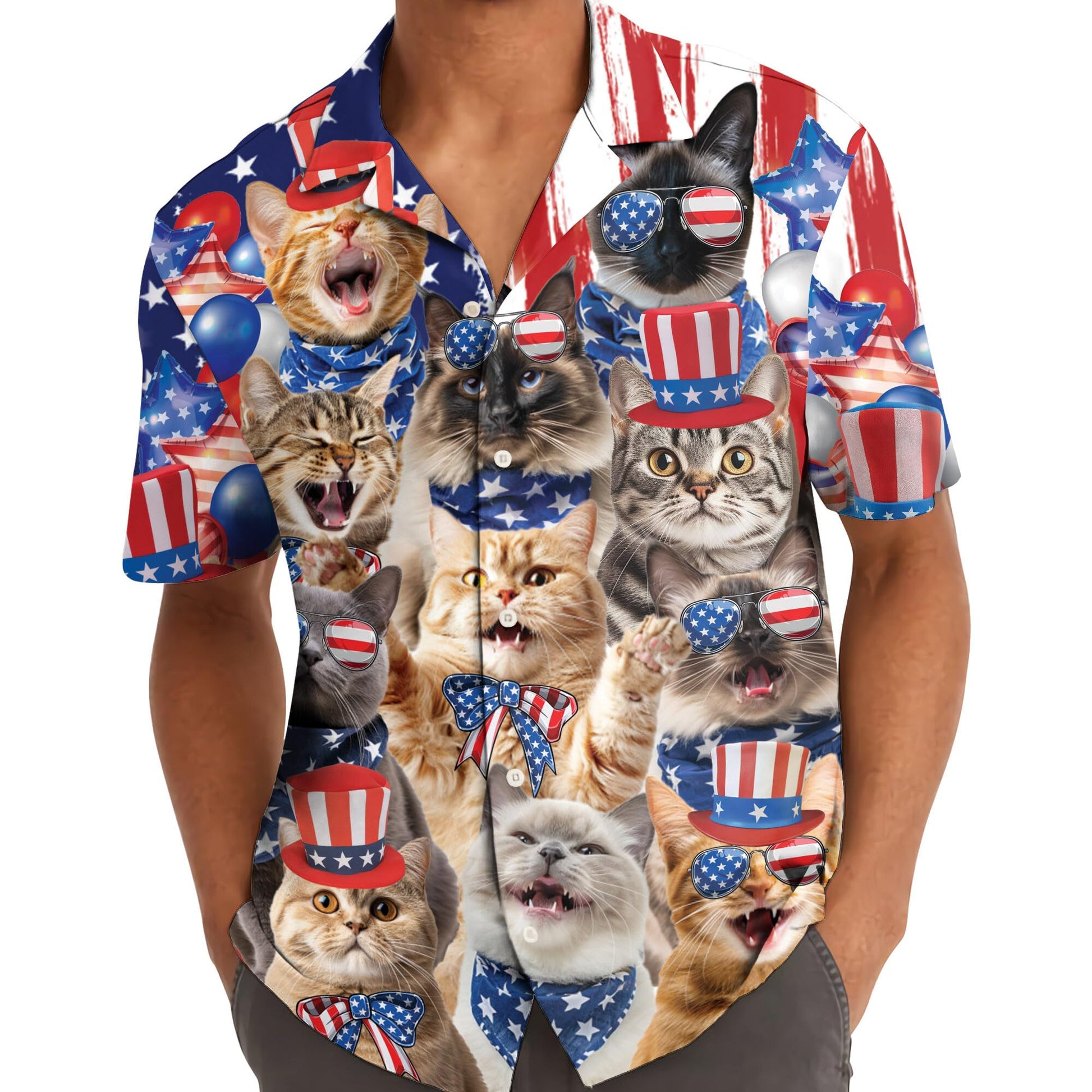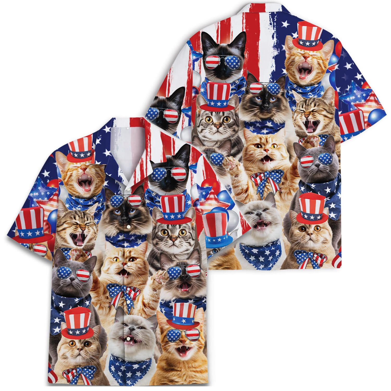 Patriotic Cats Hawaiian Shirt – Funny 4th of July Cat Party Shirt for Men & Women