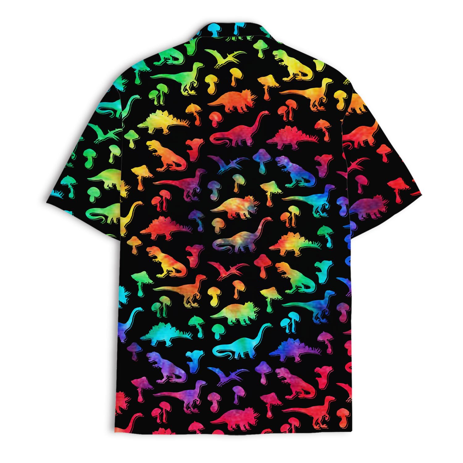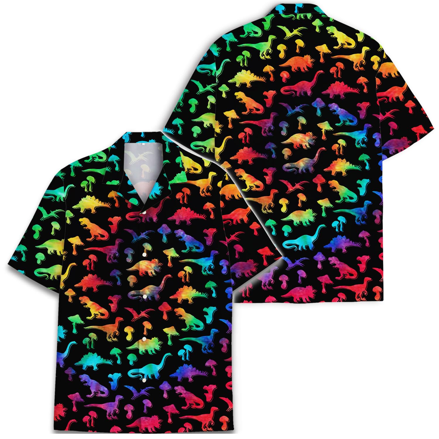 Rainbow Dinosaur Hawaiian Shirt – Colorful Dino & Mushroom Print